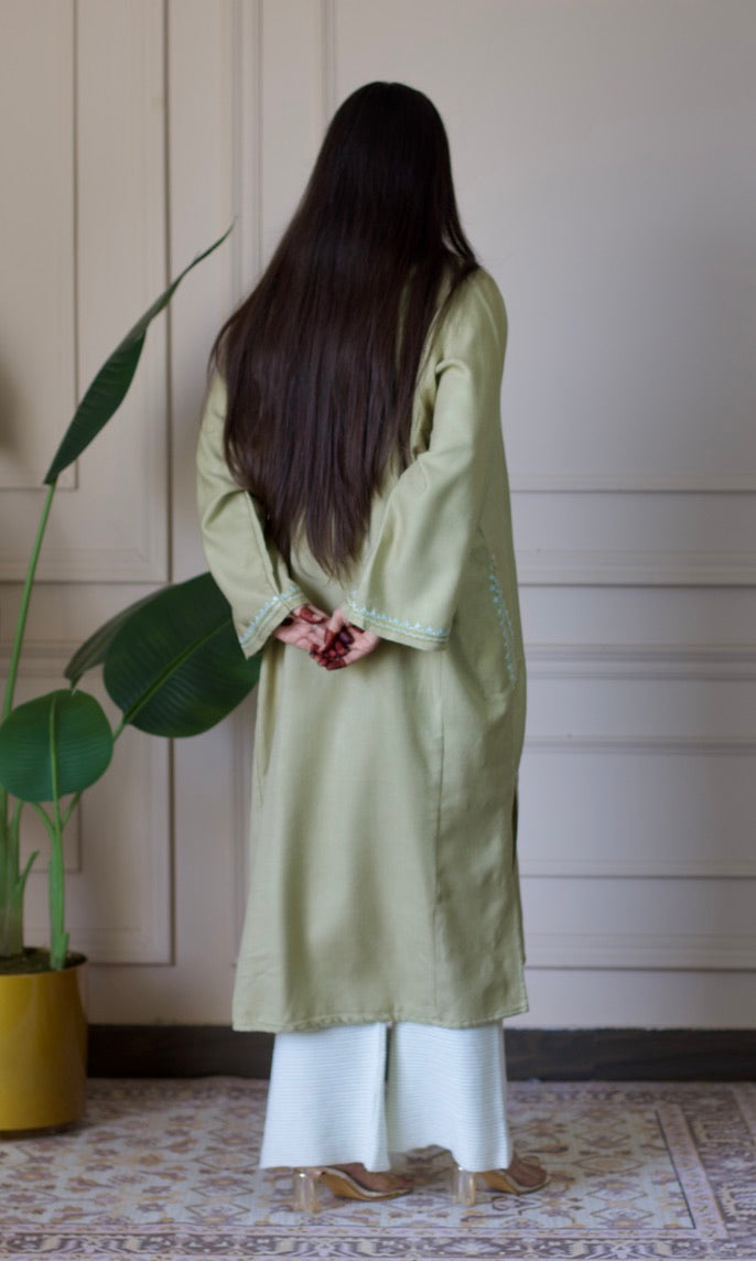 Mehendi Aari Embroidered Fine Cashmilon Pheran