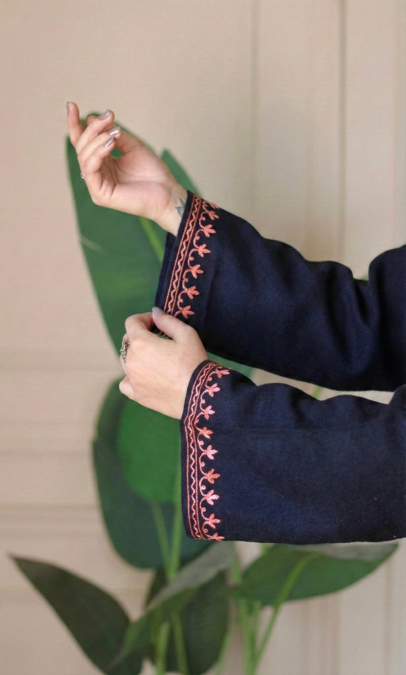 Blush Glow Navy Blue Kashmiri Aari Embroidered Fine Cashmilon Short Kurti