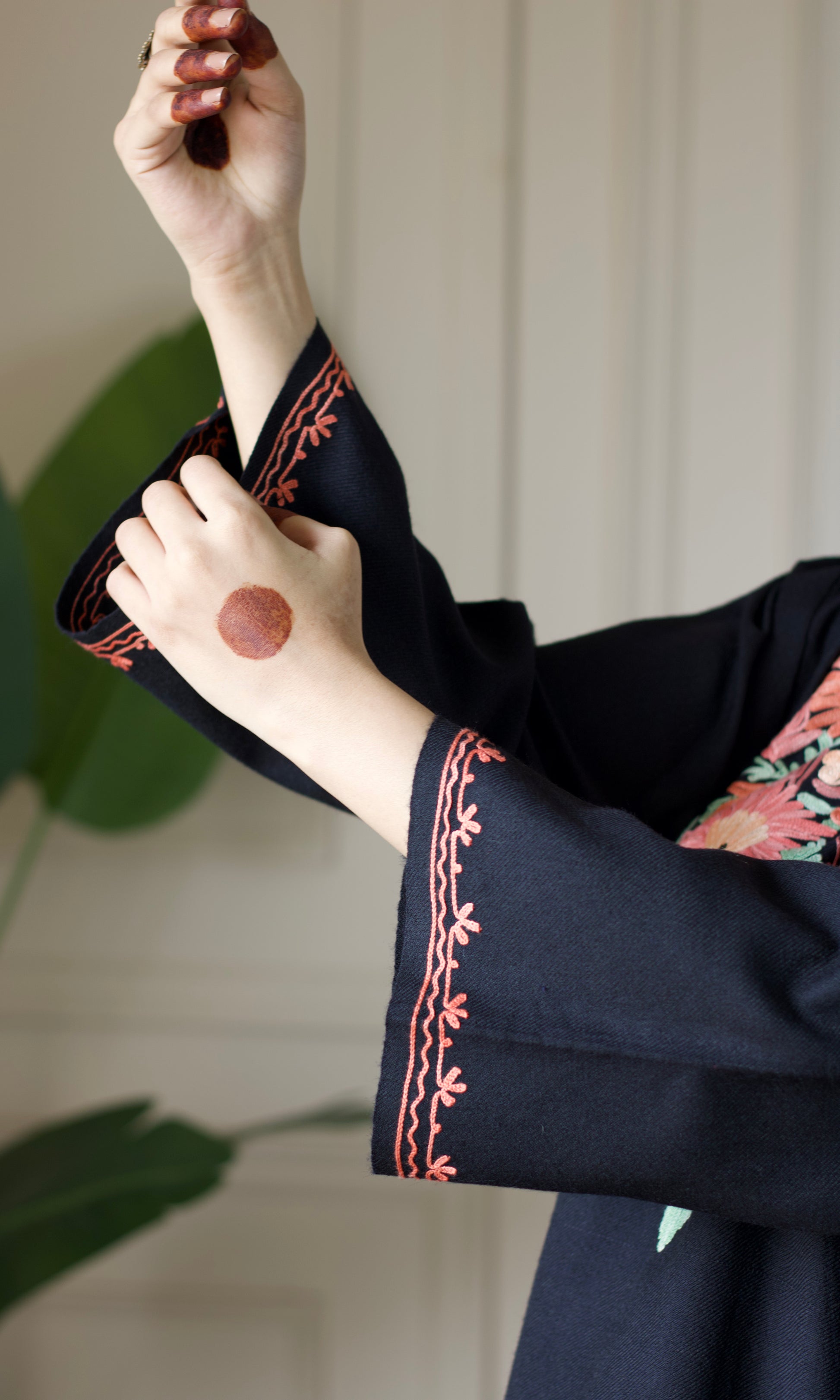 Mehendi Aari Embroidered Fine Cashmilon Pheran