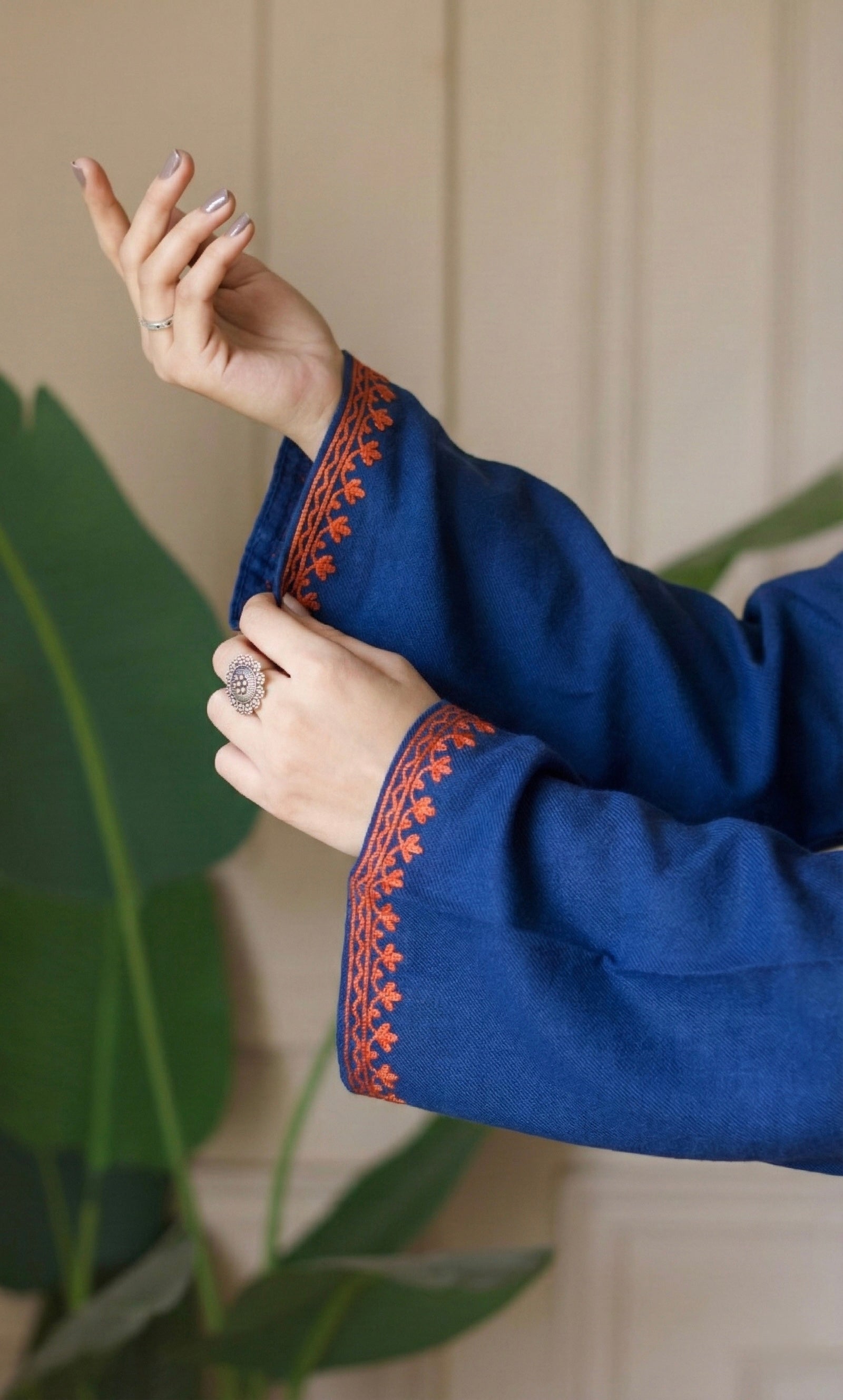 Saffron Glow Blue Kashmiri Aari Embroidered Fine Cashmilon Short Kurti